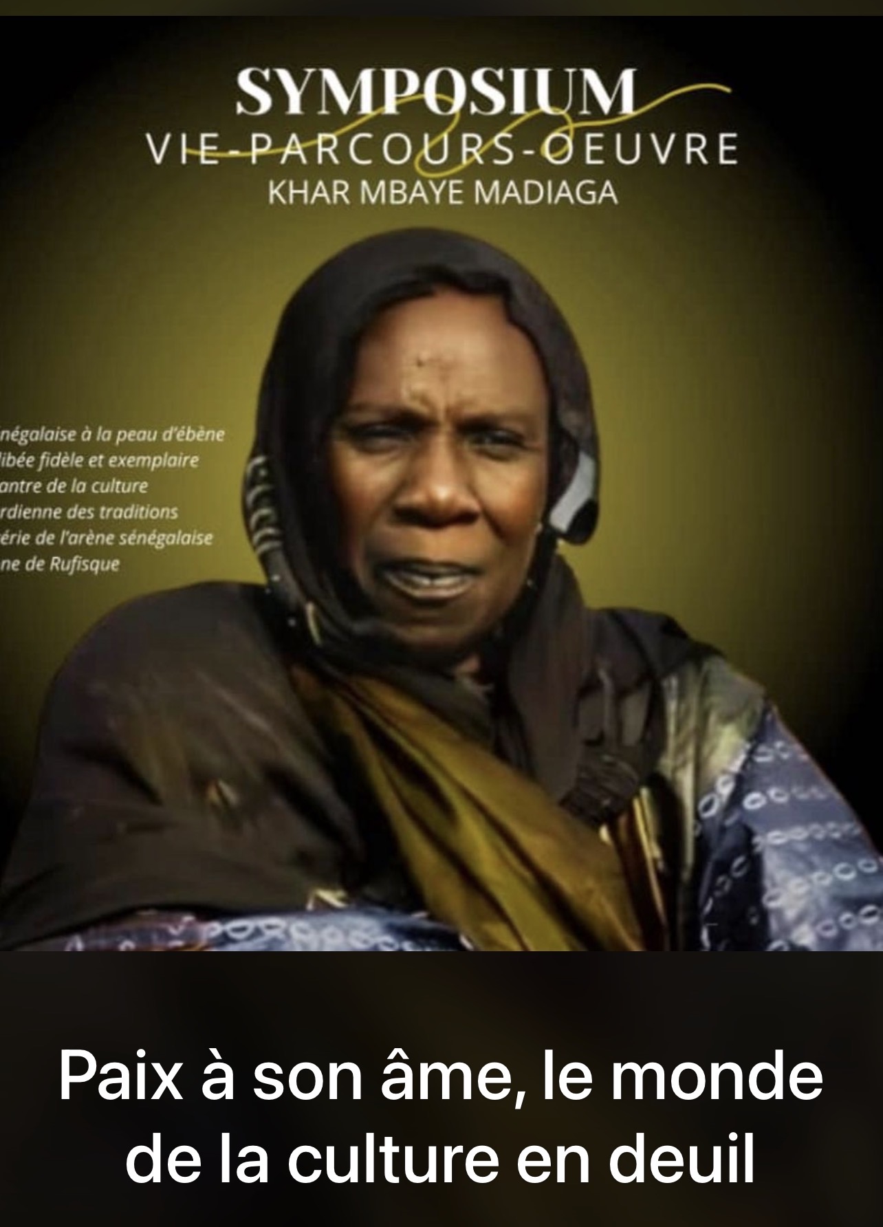 En ces moments de profonde douleur, nous adressons nos sincères condoléances à sa famille éplorée, à ses amis ainsi qu’à l’ensemble des acteurs culturels du Sénégal.