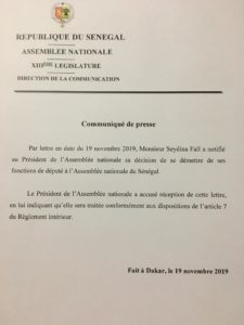 Ainsi, comme annoncé cet après-midi en exclusivité par Seneweb, le député Seydina Fall alias Bougazelli, mis en cause dans une affaire de trafic de faux billets, a officiellement démissionné de son poste de député.