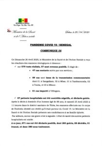 Mbourtv – Santé : Les cas communautaires prennent une courbe ascendante. Ce dimanche 26 avril, sur les 57 cas qui sont déclarés positifs, les 9 sont issus de la transmission communautaire : 1 à Sangalkam, 2 à Mbao, 1 à Tambacounda, 2 à Touba et 3 à Mbour. Selon Dr. Diouf, il y a aussi 1 cas importé à Vélingara dans la région de Kolda.