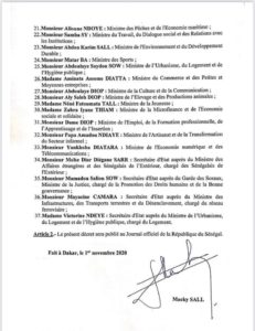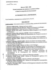 Mbourtv – Politique : La liste des nouveaux membres du gouvernement est connue. Il s’agit d’un gouvernement élargi, d’union nationale composé de 33 ministres et 4 ministre d’Etat. Ainsi donc, 7 nouvelles figures font leur entrée dans le nouvel attelage. Entre autres, Aissata Tall Sall, Oumar Samba Ba. Egalement, on note de nombreux départs donc ceux de Makhtar Cissé, Aly Ngouille Ndiaye, Mahammad Dionne, Amadou Ba. Ci- dessous la liste complète des nouveaux membres du gouvernement.